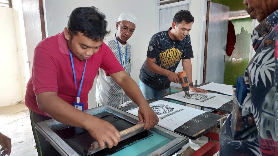 “Para peserta pelatihan ini mendapat materi pengenalan dan latihan dasar sablon dengan menghadirkan narasumber Fakhrur Rozi dari Sancoletion Biru Langit dari Desa Sopa’ah Pamekasan,”terangnya.