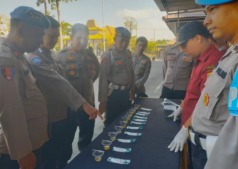 Sejumlah anggota dilakukan tes urine yang oleh Sipropam dan Sidokkes, yang disaksikan oleh Wakapolres Sampang Kompol Hosna Nurhidayah dan Kabag SDM Polres Sampang Kompol Joko Agus Dwi di samping lobby Mapolres. Rabu 09/10/2024.
