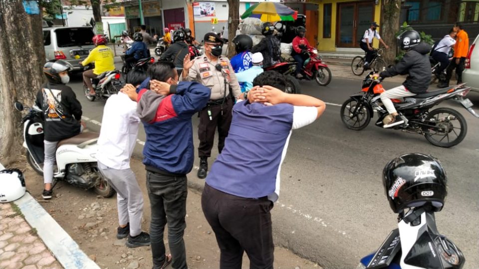 Selanjutnya ke enambelas orang itu diberikan sanksi/tindakan berupa jongkok berdiri.