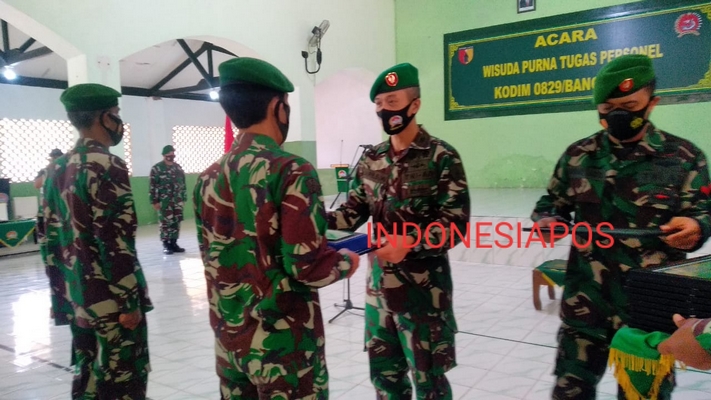 Wisuda purna tugas personel Kodim 0829 Bangkalan yang memasuki masa pension, dipimpin langsung Dandim Letkol Kav Ari Setyawan Wibowo. Namun, dengan tetap menerapkan protokol kesehatan di Aula Manunggal Kodim 0829 Bangkalan, Jum’at (16/10/2020).