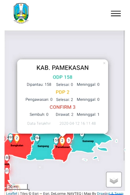 Pasien Positif Covid 19 di Kabupaten Pamekasan menjadi 3 orang, yang dengan rincian setelah 1 pasien Positif meninggal dan 1 lagi dirawat di RSUD SMART dengan kondisi semakin membaik.
