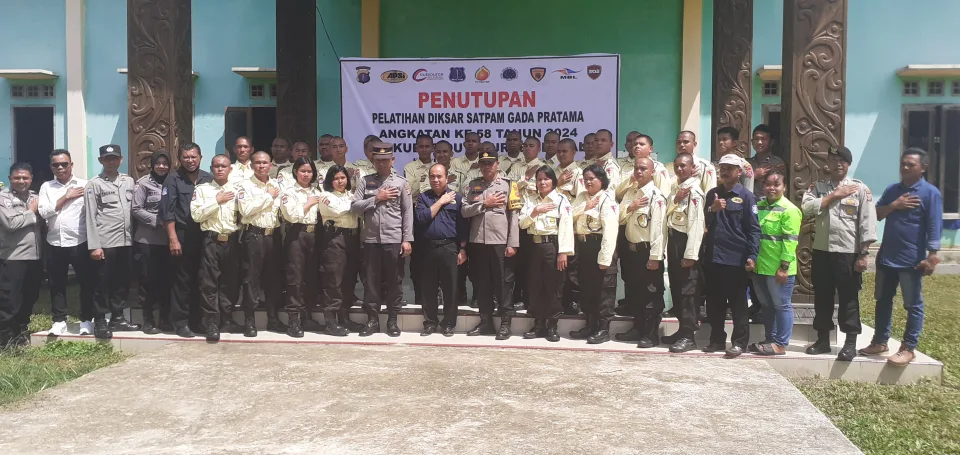 Kapolres Kutai Barat AKBP Kade Budiyarta SIK yang diwakili Kasat Binmas IPTU Samsul Hadi, resmi menutup Pendidikan Dasar (Diksar) SATPAM Angkatan ke-58 Gada Pratama di Gedung BPU Kantor Desa Mencimai Kecamatan Barong Tongkok Kutai Barat.