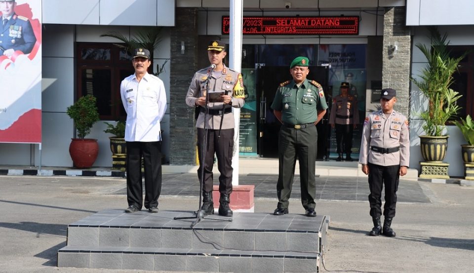 menyampaikan amanat Kapolri, kegiatan apel ini salah satu upaya Polri untuk mempercepat revitalisasi satkamling dalam memelihara keamanan dan ketertiban masyarakat secara swakarsa.