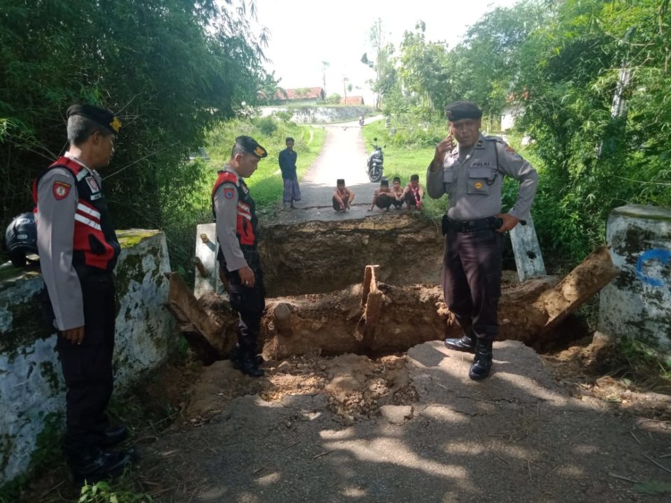 Ipda Asbudi bersama 5 anggota Sat Sabhara dan 2 anggota Polsek Kota turun ke TKP sekaligus meninjau jembatan penghubung Desa yang putus di Desa Candi Burung. Minggu (23/2/2020).