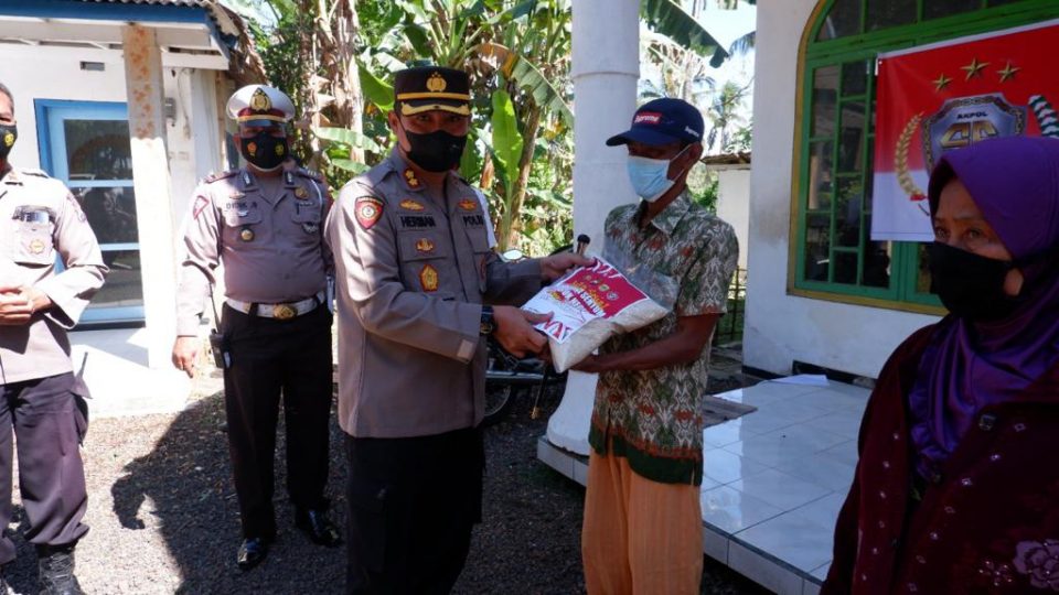 Alumni Akpol tahun 2000, Sanika Satyawada di Bondowoso membagikan ratusan sak beras kepada masyarakat terdampak Covid-19.