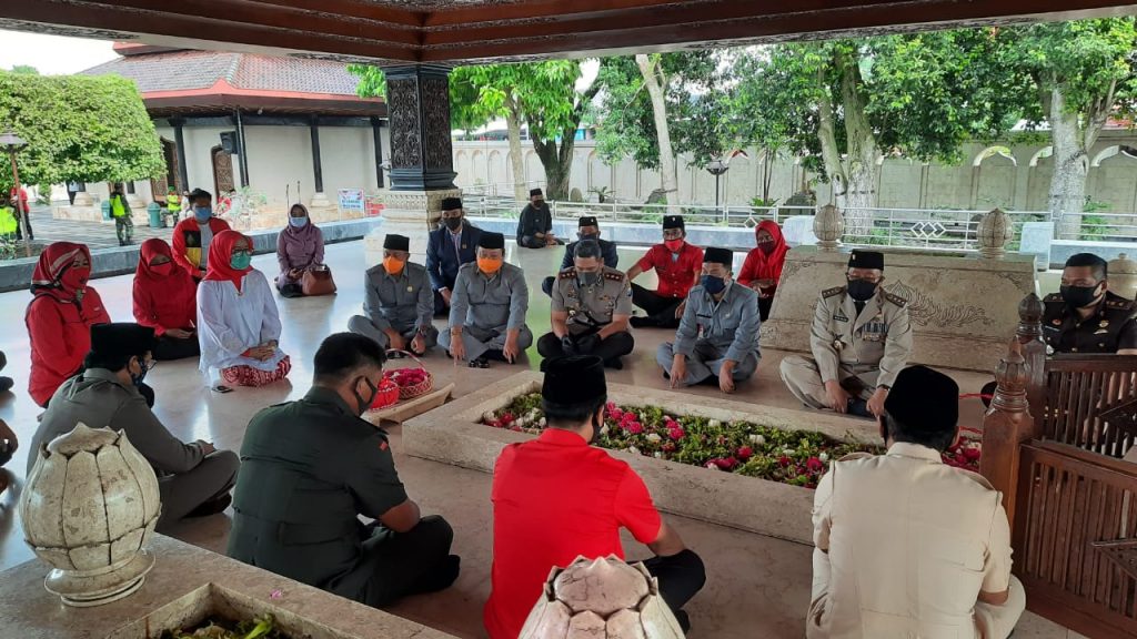 Anggota DPR-RI Sri Rahayu pada puncak peringatan Hari Lahir Pancasila, 1 Juni, berkunjung ke Bumi Bung Karno. Kedatangannya untuk memberi dukungan moril dan semangat agar masyarakat Kota Blitar kembali pulih dari Pandemi Corona yang kini dijalankan dengan New Normal. Senin (1/6/2020) pagi.
