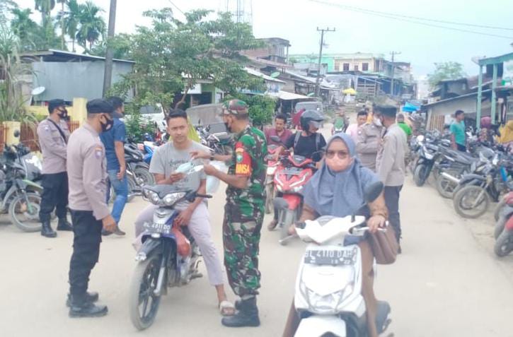 ACEH TIMUR, IndonesiaPos – Sebagai upaya meningkatkan kesadaran masyarakat pada kedisiplinan untuk mematuhi Protokol Kesehatan (Prokes) Covid-19. Babinsa Koramil 01 Peunaron, bersama Anggota Polsek Peunaron membagikan masker gratis kepada warga pengguna jalan yang melintas di Desa Peunaron, Kecamatan Peunaron, Kabupaten Aceh Timur, Senin (07/03/2022).