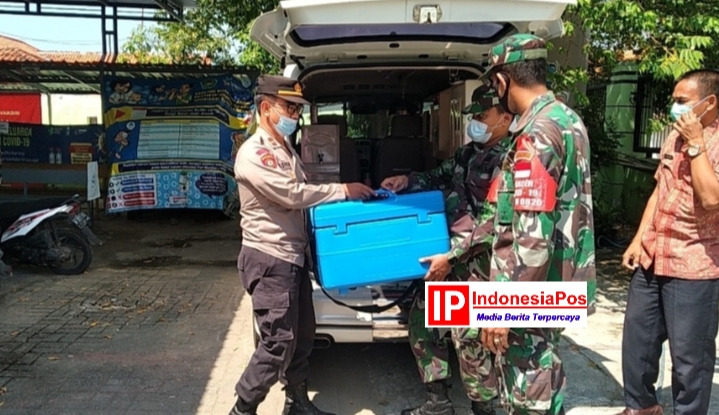 Anggota Polsek dan Koramil Galis Kabupaten Pemakasan melakukan pengawalan pendistribusian vaksin Covid-19 dari Dinkes Pamekasan ke UPT Puskesmas Galis, dipimpin oleh Wakapolsek.