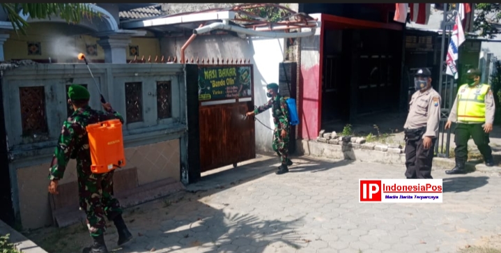 Anggota Polsek dan Koramil Pademawu Semprot Disinfektan Rumah Warga