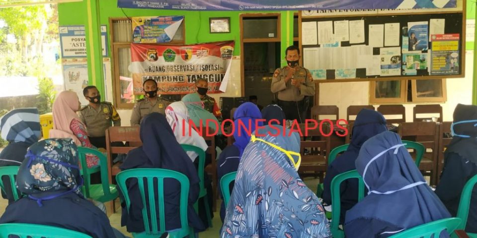 Kapolsek Palengaan Iptu Sri Sugiarto, bersama anggota Koramil mendatangi Mahasiswa KKN dari Universitas AL-Hairot di Balai Desa Larangan Badung Kecamatan Palengaan Kabupaten Pamekasan. Sabtu (29/8/2020).