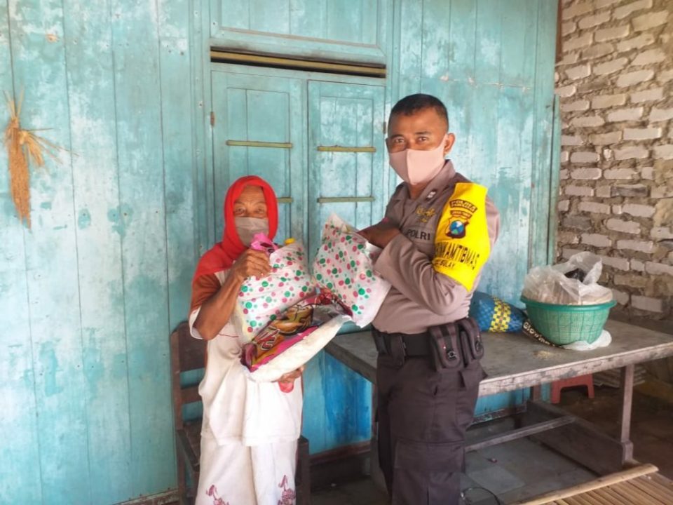 Polsek Galis membagikan sembako kepada warga terdampak pandemi covid19. Kegiatan tersebut untuk mewujudkan kepedulian Polri kepada warga.