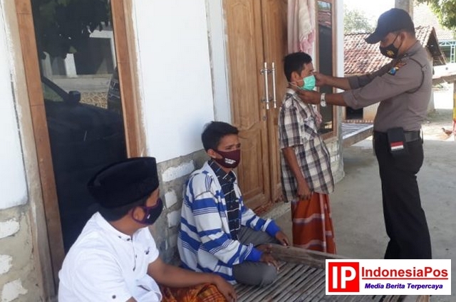 Anggota Kepolisian Sektor Proppo Pamekasan melakukan sosialisasi dan menyampaikan himbauan kepada masyarakat tentang bahaya penyebaran Virus Corona.
