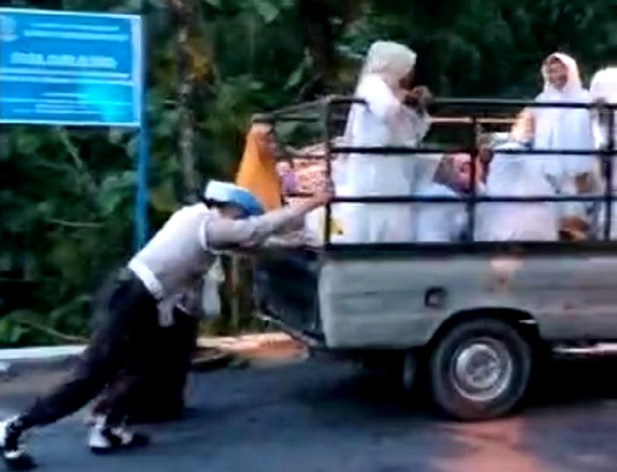 Anggota pun membantu mendorong mobil tersebut ke tempat penjual bensin eceran. Setelah diisi BBM, kendaraan tersebut hidup dan kembali melanjutkan perjalanan menuju ke Masjid Asy-Shuhada’ Pamekasan untuk mengikuti kegiatan pengajian.