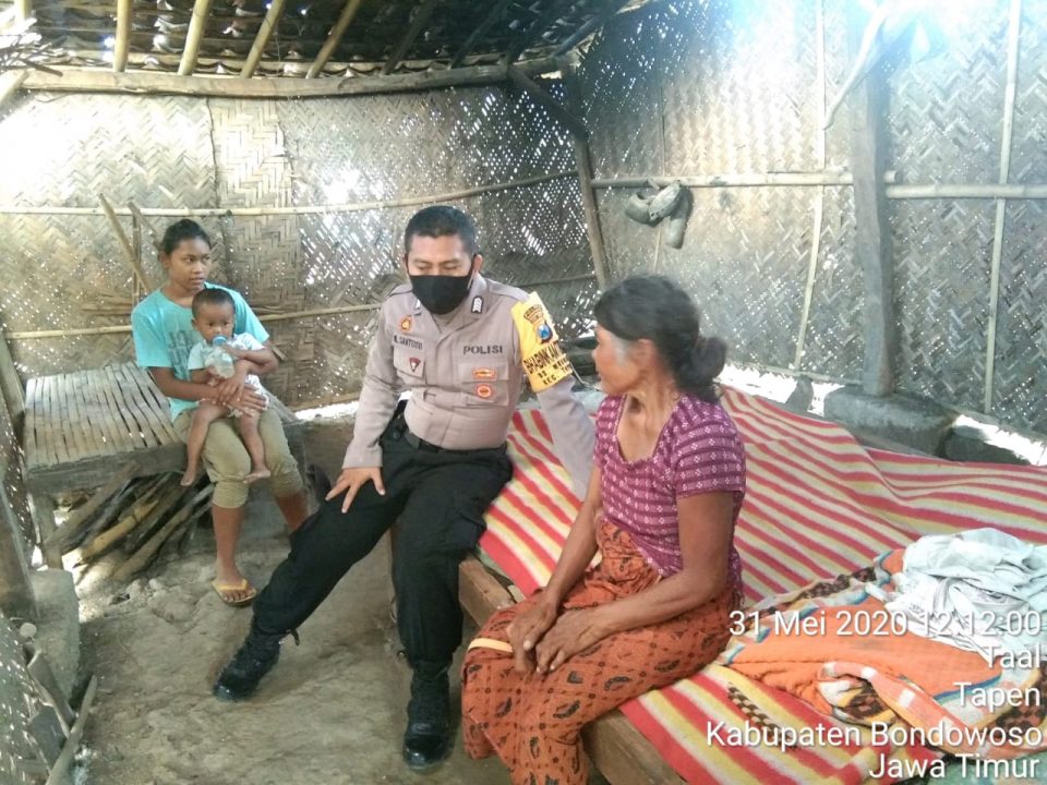 Pejabat Semenetara (P) Kanit Binmas Polsek Tapen Bripka Mamik Santoso bersama Babinsa juga di bantu warga dusun Salak desa Taal kecamatan Tapen membedah rumah tidak layak huni milik Sumini warga setempat. Selasa (02/06/2020) sekira pukul 08.00 WIB.