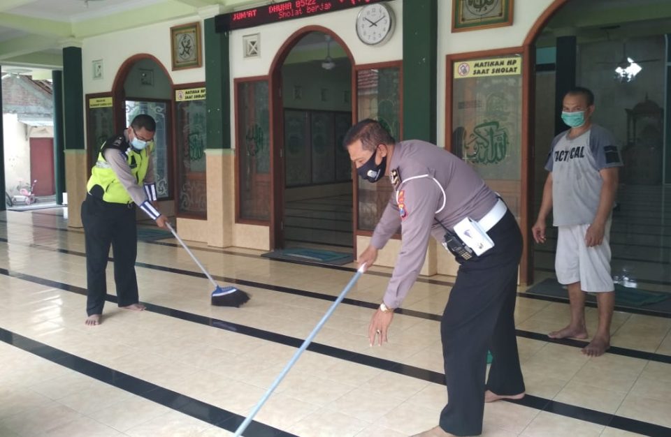 Dalam kegiatan lainnya Satlantas Polres Kota Kediri membantu membersihkan Masjid Baitussalam di Jalan Mastrip Kota Kediri dengan menyapu dan mengepel lantai Masjid Baitussalam.