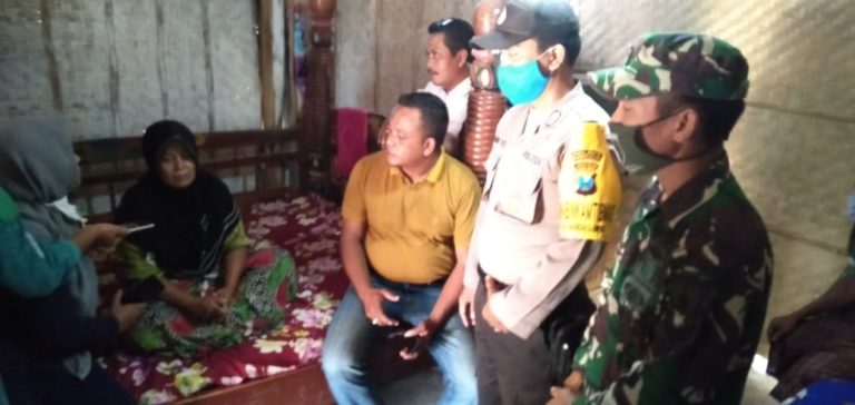 Bhabinkamtibmas dan Babinsa desa Larangan Slampar, Bidan Desa, dan tokoh masyarakat membesuk keluarga Ibu Aminah yang menderita tumor otak,Jum’at (10/4/2020 ).