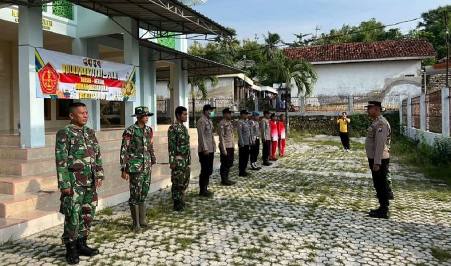 Polsek Prenduan bersama TNI dan tokoh masyarakat bersih-bersih rumah ibadah dan fasilitas umum di Mesjid Al-Fath, di desa Prenduan, Kecamatan Pragaan, Kabupaten Sumenep.