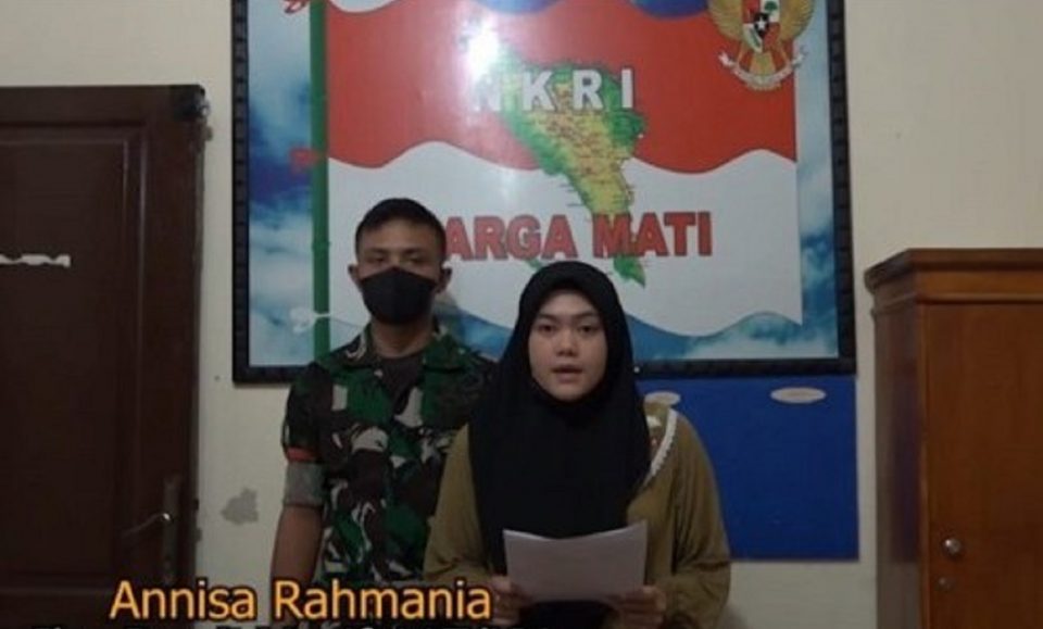 “Saya atas nama pribadi, mengajukan permohonan maaf sebesar-besarnya atas ketidaktahuan dan perbuatan saya kepada bapak Presiden Republik indonesia, Pak Panglima TNI, dan Pak KSAD seluruh pihak dan satuan.”ungkap Rahmania.