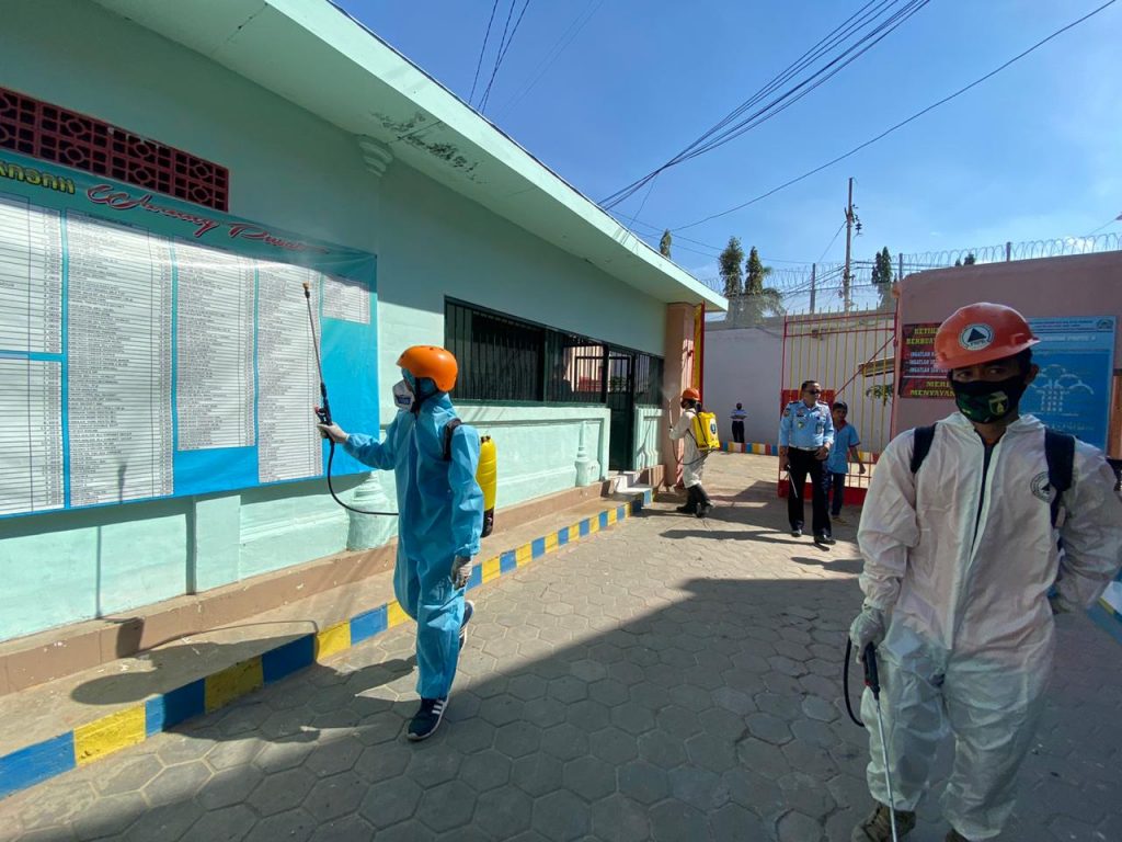 Lembaga Pemasyarakatan (Lapas) Kelas II A Pamekasan melaksanakan penyemprotan disinfektan selama sehari penuh di setiap ruangan sudut di Komplek Lapas Kelas II A Pamekasan oleh FRPB Pamekasan.