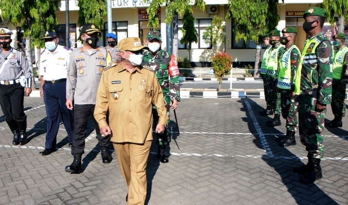 Bupati Situbondo Karna Suswandi Tinjau Personel Pengamanan Larangan Mudik Lebaran 2021
