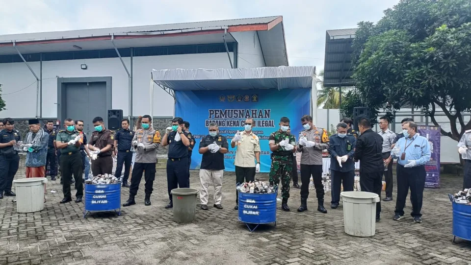 Bea Cukai Blitar Musnahkan BB Rokok dan Minuman Beralkohol Ilegal