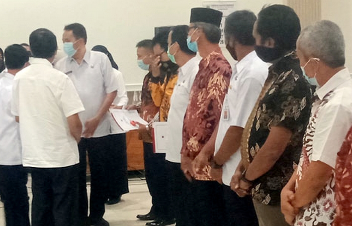 Belasan pendonor darah 50 kali, 75 kali, dan 100 kali menerima penghargaan dari PMI Bondowoso. (foto: istimewa).