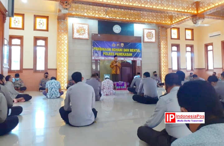 Dalam rangka meningkatkan keimanan dan ketaqwaan anggotanya kepada Tuhan YME, Polres Pamekasan mengadakan pembinaan rohani dan mental (Binrohtal), di Masjid Baitul Amin, secara rutin setiap hari Jum’at.