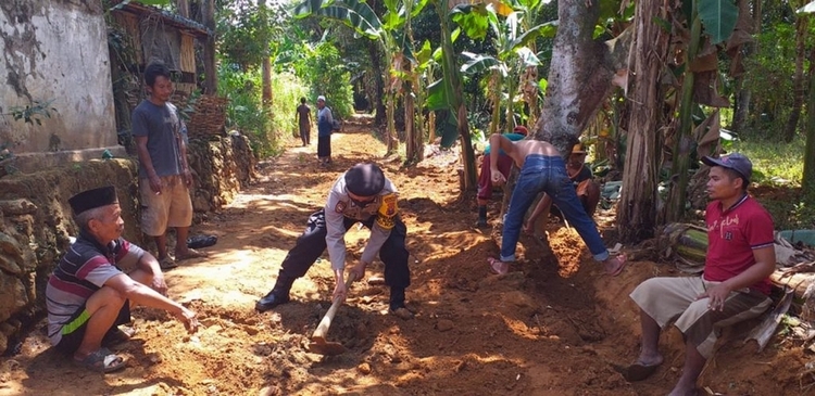 Kerja bakti yang dilakukan Bhabinkamtibmas ditengah-tengah masyarakat yang turut serta terjun langsung membantu dalam pembangunan jalan baru alternatif menuju jalan Desa kurang lebih 250 meter, membuat warga binaannya lebih bersemangat