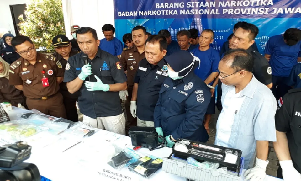 Badan Narkotika Nasional Provinsi (BNNP) Jawa Timur melakukan pemusnahan barang bukti narkoba jenis sabu dan ganja akan di musnahkan di Kabupaten Pamekasan, di Pendopo Ronggosukowati pada hari Rabu (04/6/2025).
