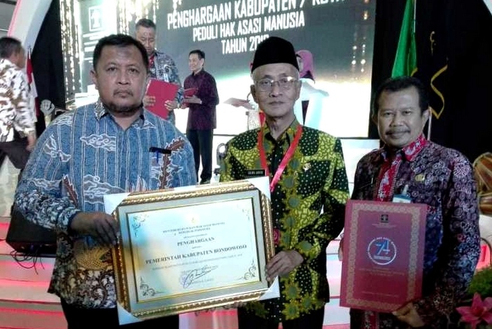 Menjelang berakhirnya 2019, penghargaan nasional maupun regional Jawa Timur (Jatim) terus diraih Kabupaten Bondowoso. Setelah meraih penghargaan Ombudsman Award 2019 Predikat Kepatuhan Tinggi Pelayanan Publik dari Ombudsman RI dan Kabupaten Kota Sehat (KKS) 2019 dari Kemendagri dan Kemenkes RI pada November lalu, serta dua penghargaan dalam Kompetisi Inovasi Pelayanan Publik (Kovablik) dan Evaluasi SAKIP OPD Jatim 2019 pada awal Desember, kali ini Bondowoso meraih penghargaan Kabupaten Peduli Hak Asasi Manusia (HAM) 2019.
