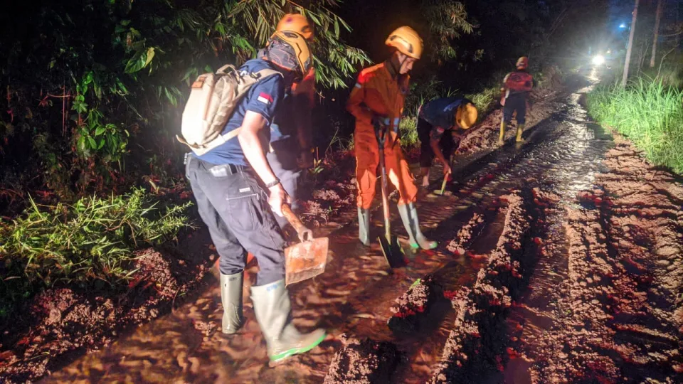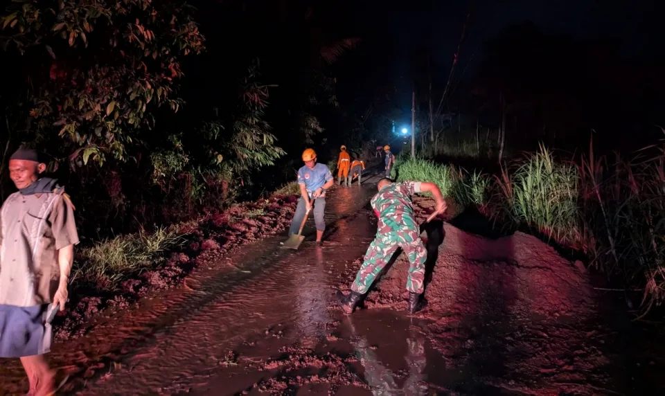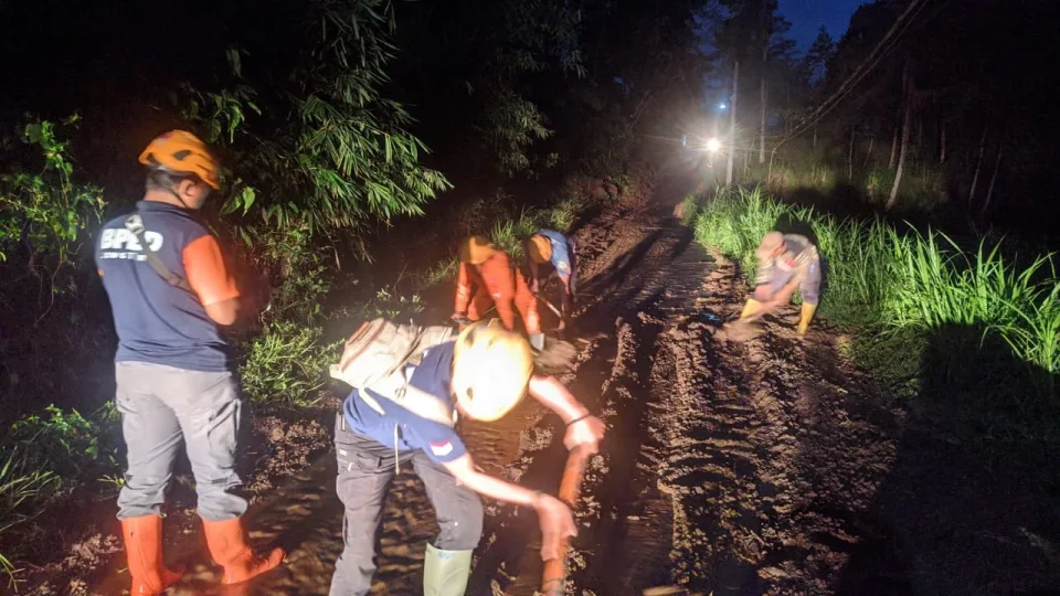 Tim Gabungan gabungan melakukan penanganan evakuasi material tanah yang menutup akses jalan dengan peralatan manual dan apa adanya,”tegasnya.
