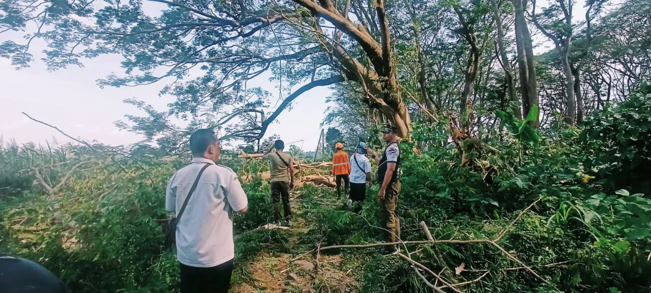 “Beruntung dalam peristiwa itu tidak ada korban jiwa, hanya saja puluhan pohon besar tumbang berserakan,”tegasnya