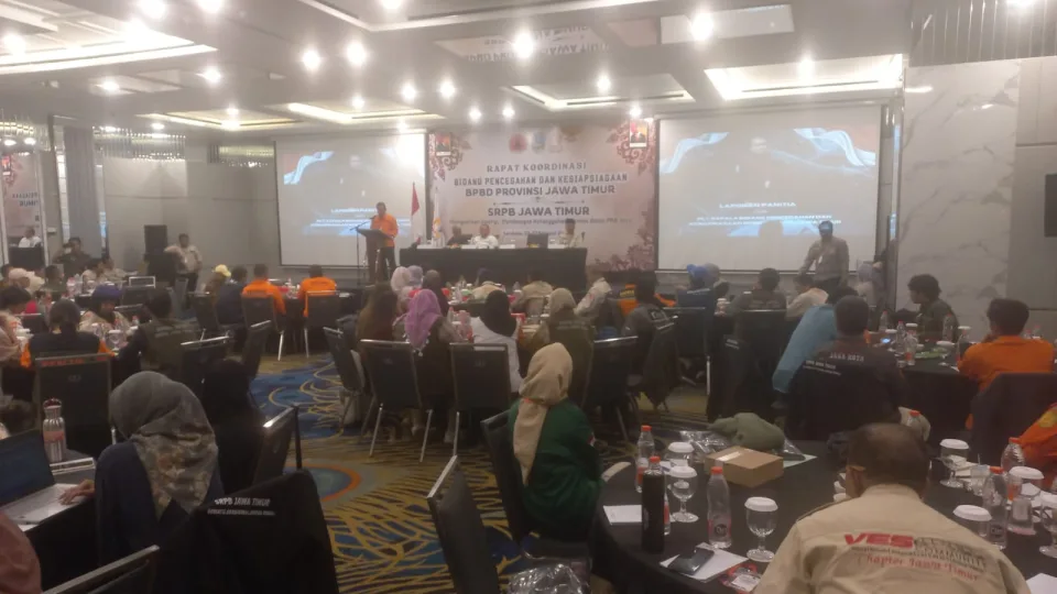 Badan Penanggungan Bencana Daerah (BPBD) Provinsi Jawa Timur dan Sekretariat Bersama Relawan Penanggulangan Bencana (SRPB) Provinsi Jawa Timur melaksanakan Rapat Koordinasi (Rakor) bersama dengan sejumlah organisasi kemitraan di Gedung Hotel dan Suites Surabaya pada Sabtu (22/02/2025).