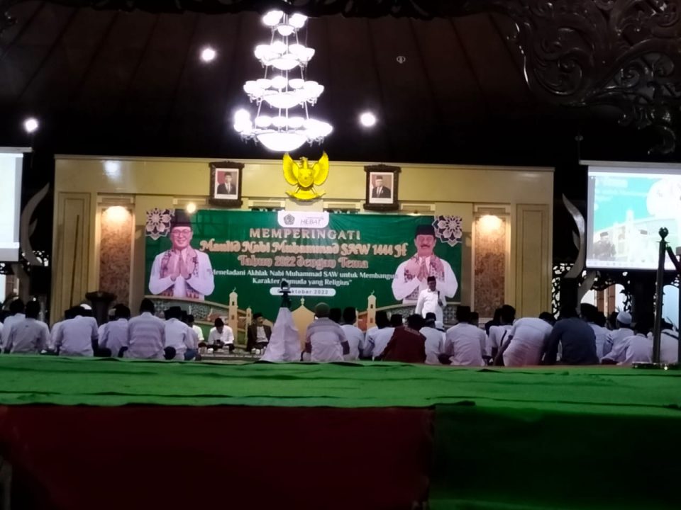 PAMEKASAN, IndonesiaPos – Pemerintah Kabupaten (Pemkab) Pamekasan menggelar peringatan Maulid Nabi Muhammad SAW 144 H Tahun 2022,dengan tema “Meneladani Akhlak Nabi Muhammad SAW Untuk Membangun Karakter Pemuda yang Relegius. “di aula Mandhepa Pendopo Agung Ronggosukowati Pamekasan pada Sabtu (08/10/2022) malam.