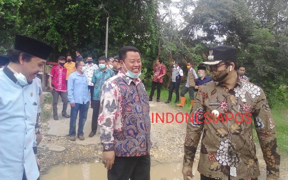 Bupati Bangkalan R Abdul Latif Amin Imron bersama Anggota Komisi D DPRD Jawa Timur, Dinas PU Sumber Daya Air (SDA), sejumlah kepala desa, tokoh masyarakat dan juga tokoh ulama meninjau lokasi banjir di Kecamatan Blega, Selasa (29/12/2020).
