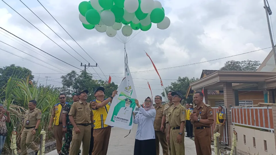 Peresmian Rehabilitasi jalan Slorok-Karangrejo ditandai dengan penandatanganan berita  acara dan pemotongan pita, kemudian dilanjutkan dengan pelepasan Balon oleh Bupati Blitar Hj Rini Syarifah .