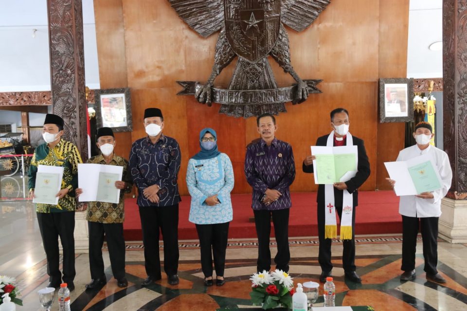 BLITAR, IndonesiaPos – Pemerintah Kabupaten Blitar menyerahkan sertifikat wakaf dan Badan keagamaan tahun 2022 kepada 56 organisasi diantaranya pengurus NU, Muhammadiyah, Pure dan Gereja sebagai pemegang hak.