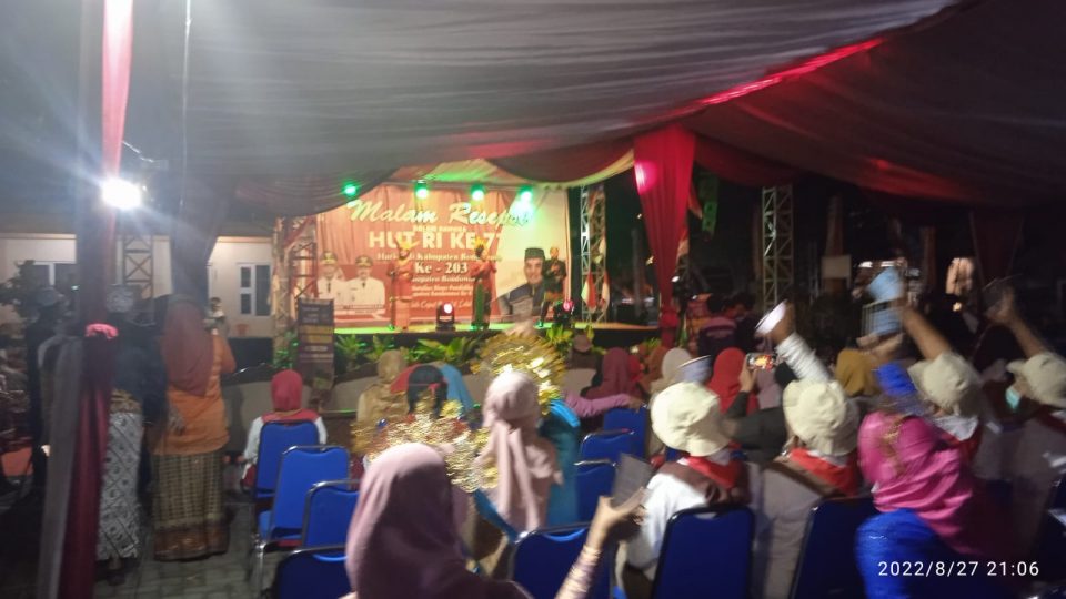 Malam resespsi HUT RI ke 77, HUT Bondowoso ke 203 dan HUT Disdikbud ke 47, ini dihadiri Bupati Bondowoso Salwa Arifin dan beberapa pejabat.