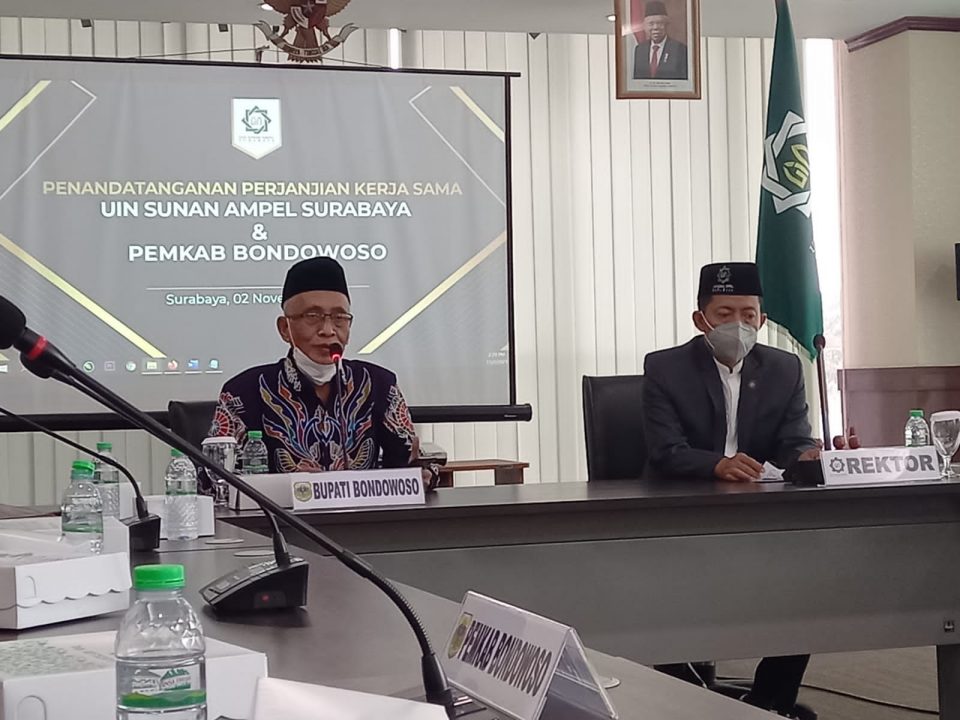 Penandatangan perjanjian kerjasama atau MoU Pemkab Bondowoso dengan UINSA Surabaya berlangsung, Selasa, kemarin (2/11/2021).