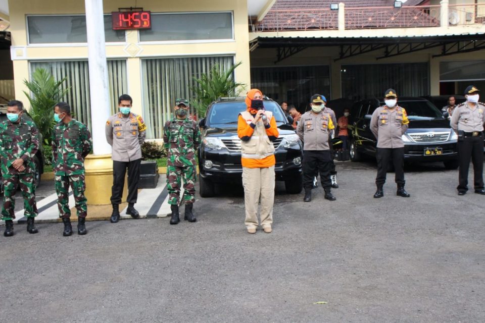Pada waktu yang bersamaan dari pantauan media, ternyata bupati Faida sedang memberi pengarahan cara penyemprotan desinfektan di halaman mapolres Jember.