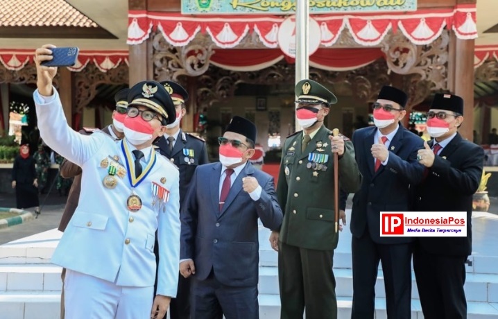 Rangkaian kegiatan upacara  dalam rangka memperingati HUT Republik Indonesia ( RI ) ke-76, seluruh jajaran petinggi Pemerintah Kabupaten (Pemkab) Pamekasan, mengikuti upacara 17 Agustus yang berlangsung di lapangan depan Pendopo Mandhapa Aghung Ronggosukowati.