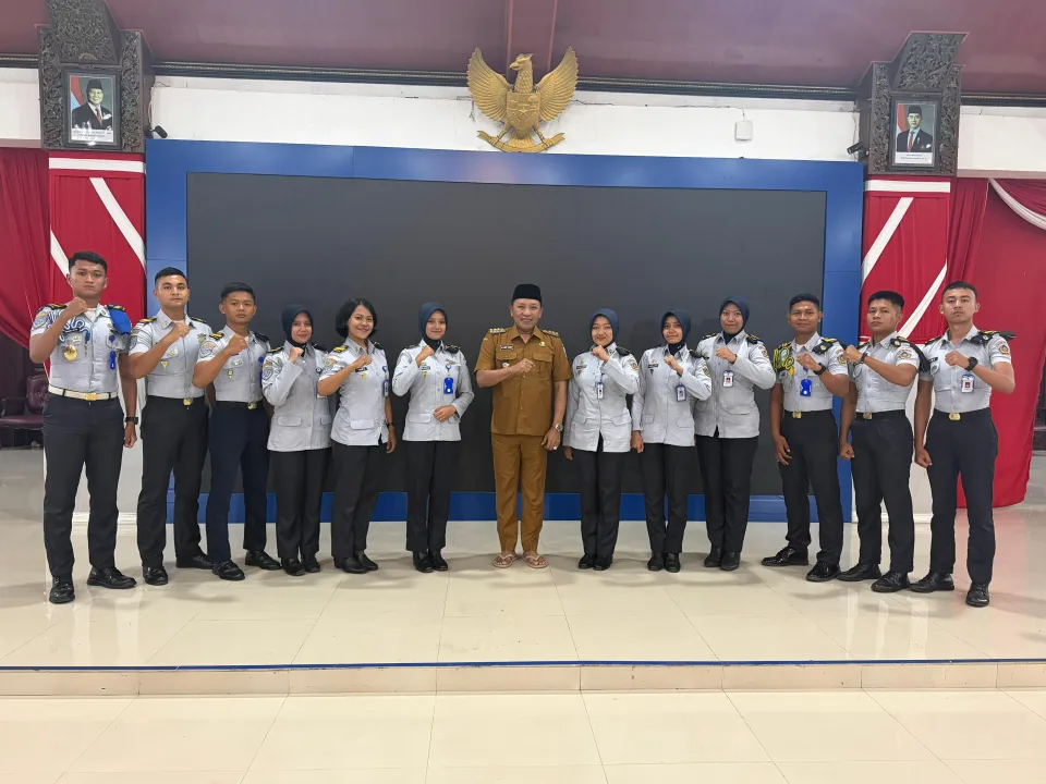 Bupati Sampang, H. Slamet Junaidi, menyambut hangat kedatangan taruna-taruni mahasiswa Sekolah Tinggi Transportasi Darat (STTD) dari Kota Bekasi di Pendopo Trunojoyo Sampang, Selasa (10/2/2026).