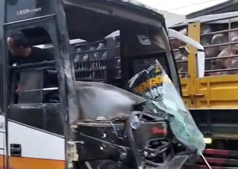 Bus Harapan Jaya Tabrak Mobil Hingga Lindas  Pengendara Sepeda Motor