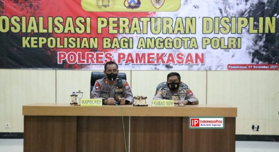 Polres Pamekasan menggelar Sosialisasi Peraturan Disiplin Kepolisian bagi anggota Polri di Gedung Bhayangkara Polres Pamekasan, Rabu (1/12/2021).