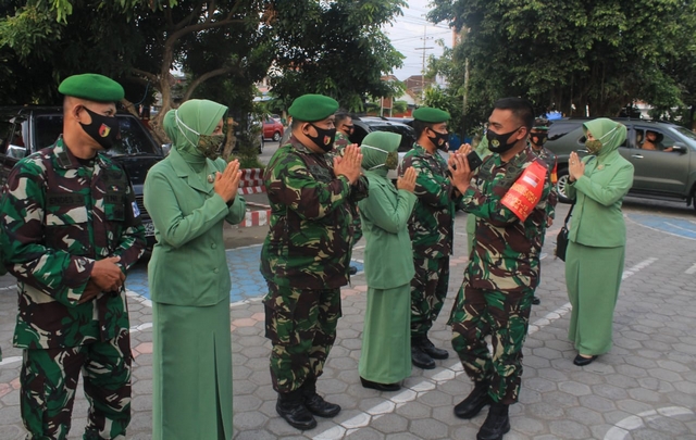 Dandim 0808 Blitar Letkol Arh Dian Musriyanto, di dampingi Ketua Persit Kartika Chandra Kirana Cabang XXII Dewi Dian Musriyanto saat kunjungan kerja di Koramil 15 Gandusari dan Koramil 16 Talun. Jum’at (25/09/2020).