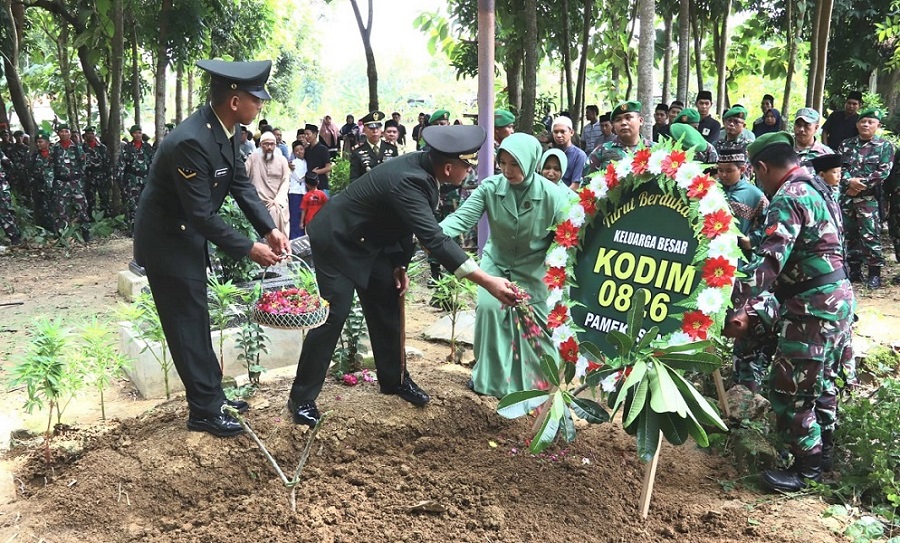 Komandan Kodim 0826 Pamekasan Letkol Inf Ubaydillah memimpin upacara pemakaman Pelda Abdul Rahman di Tempat Pemakaman Umum (TPU) Desa Lemper Kecamatan Pademawu, Rabu (01/05/2024).