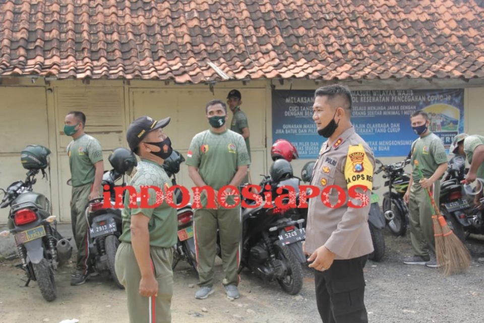 TNI-Polri Kabupaten Sampang terlihat kompak saat melakukan kegiatan bersih bersih dilingkungan Asrama Polres Sampang. Selasa (24/11/2020).