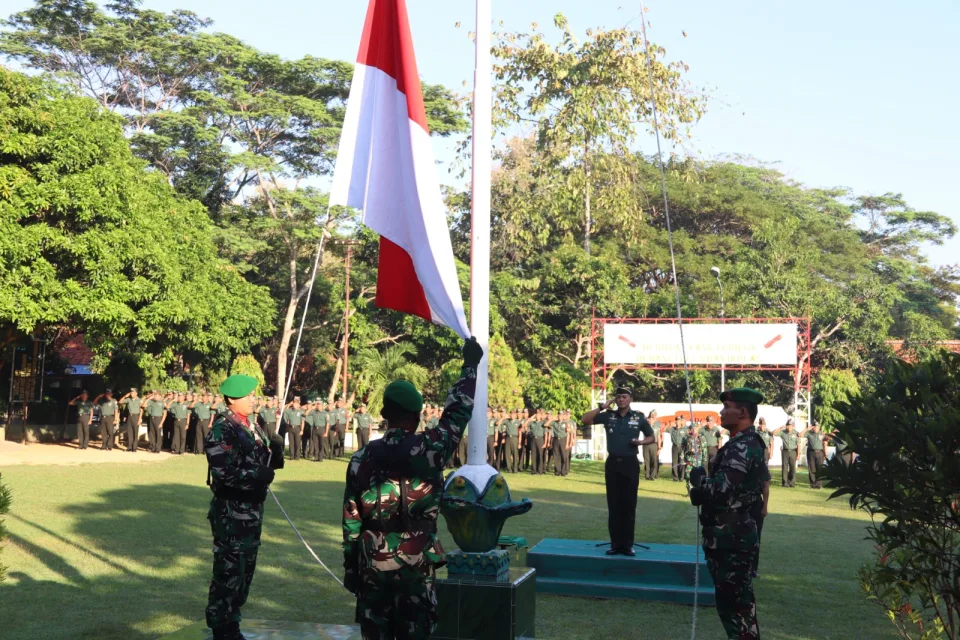 Kodim 0826 Pamekasan melaksanakan upacara Bendera tujuh belasan di lapangan upacara Makodim pada Rabu (19/6/2024).