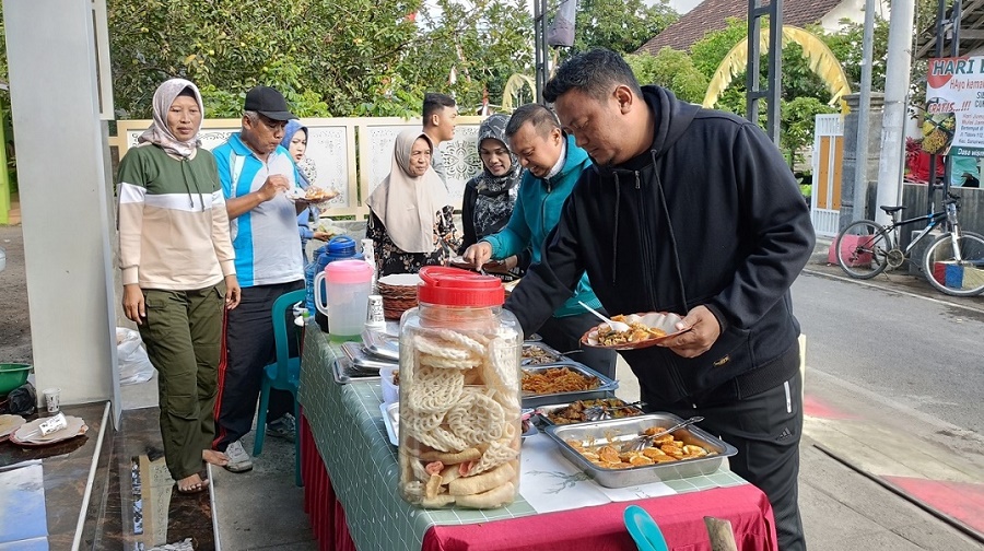 Kegiatan tersebut berupa makanan siap saji yang rutin setiap satu bulan sekali di Minggu pertama. Sementara para ibu ibu menyiapkan makanan menu desa untuk diberikan kepada semua warga masyarakat yang melintas di jalan Tidore 112 RT 03 RW 07 kelurahan Klampok. Jumat (1/9/2023).