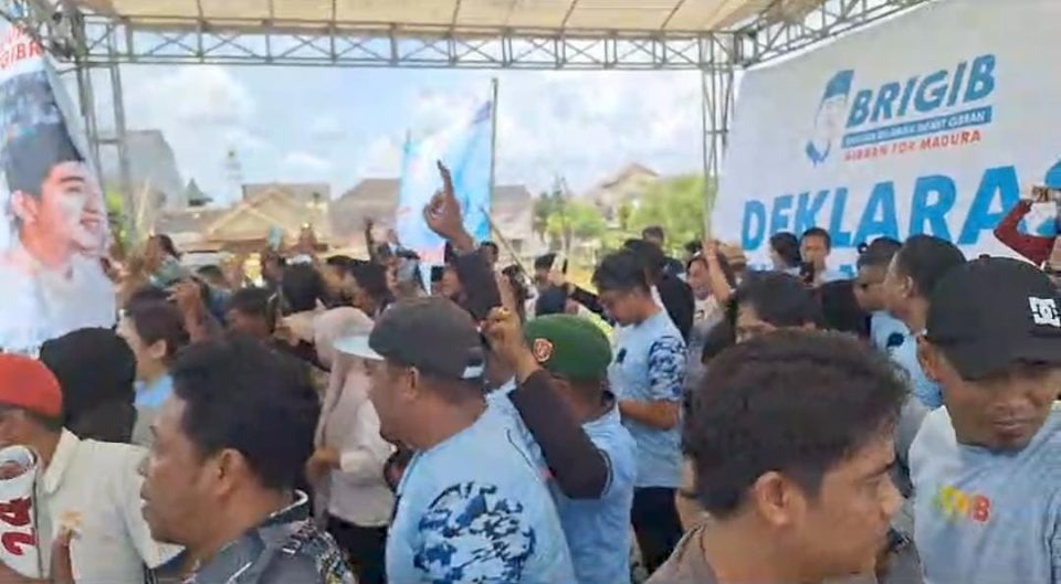 Ribuan relawan memadati acara Deklarasi Barisan Relawan Infant Gibran (Brigib) di lapangan Bumi Sumekar Asri (BSA). Kamis, (25/1/2024)